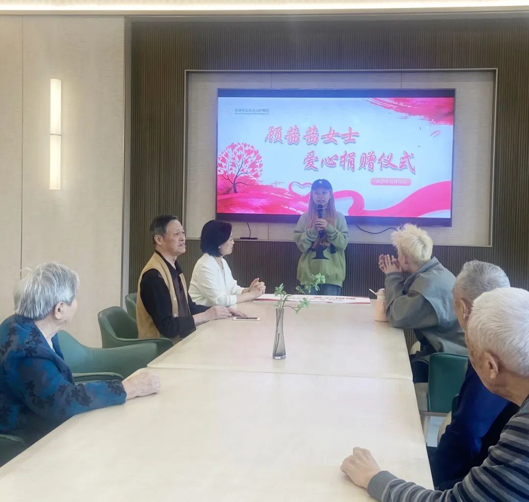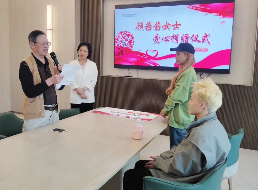 敬老爱老的美德是先辈传承下来的宝贵精神财富,顾茜茜女士继承和发扬了中华民族传统美德,我谨代表居住在申丞观音山护理院的兄弟姐妹们向顾茜茜女士致以最诚挚的谢意!