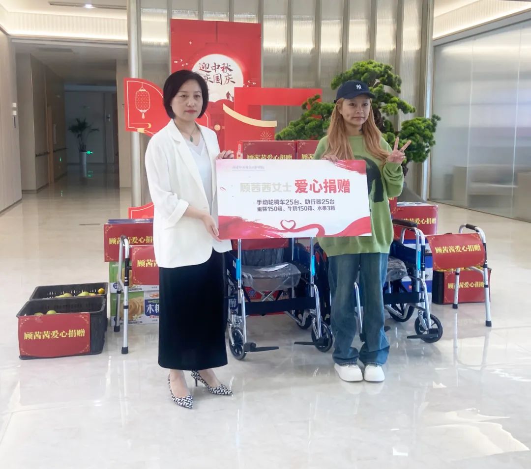 善举襄助社会,爱心彰显真情。为大力弘扬中华民族尊老、爱老、敬老、助老的传统美德,不断提升老年人的获得感和幸福感。结合新时代文明实践活动,爱心人士顾茜茜女士来我院开展爱心捐赠公益活动,为我院捐赠了手动轮椅车25台,助行器25台,蛋糕150箱,牛奶150箱,水果三箱,并对长者们送上关心和美好祝福。